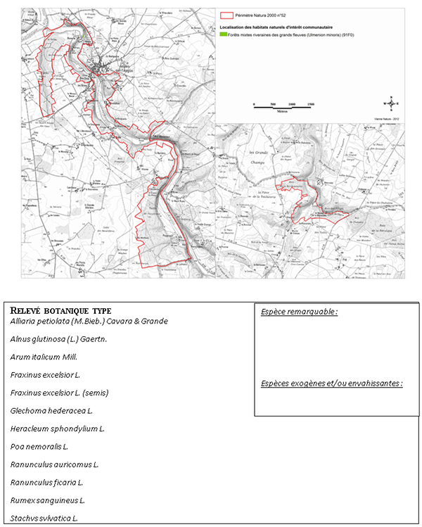 Au sein du site Natura 2000 « Vallée de l’Anglin » cet habitat a été recensé uniquement au niveau de la commune d’Angles-sur-l’Anglin au Moulin de Remerle. Cet habitat est localisé sur une terrasse alluviale relativement haute (environ 2,50 m par rapport à l’eau), en pied de coteau et où le substrat sablo-limoneux a été déposé par les crues hivernales.