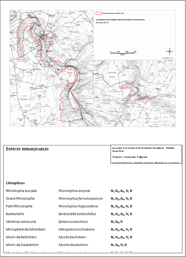D’après l’inventaire des cavités de la Vienne (Comité Départemental de Spéléologie) et l’IGN 1/25.000ème, il existe une quinzaine de cavités naturelles sur le site (grottes et gouffres). Certaines ont un développement important et d’autres ont des dimensions réduites. Les grottes les plus grandes abritent d’importantes populations de chauves-souris tant en hiver pour leur hibernation, qu’en été pour leur reproduction. Sur le site, la cavité accueillant les plus importantes populations de chauves-souris est celle de Boisdichon sur la commune d’Angles-sur-l’Anglin. Cette cavité accueille près d’une dizaine d’espèces chaque hiver avec des effectifs fluctuant entre 800 et 1600 individus depuis 20 ans. En été, une colonie de reproduction de Rhinolophe euryale (200 à 400 individus) s’y installe. Elle constitue un des 5 grands noyaux de la population française et appartient à la population dite du « Haut-Poitou ». Parmi les autres cavités on peut citer la grotte des Droux, la Roche aux Fées et le Roc à Midi. Ces dernières jouent probablement un rôle important comme gîte de transition pour certaines espèces en intersaison (passage du gîte d’hiver vers le gîte de reproduction et vice et versa) ou au cours de la nuit (gîte secondaire).