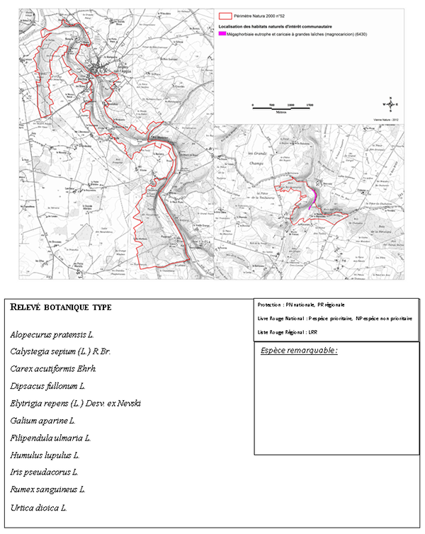Cet habitat a été recensé seulement au niveau de la commune de Béthines dans le secteur de la Massotière en mélange avec des communautés de grandes laîches (Carex acutiformis essentiellement). Il se présente sous une forme relativement pauvre et peu diversifiée, où seules quelques espèces caractéristiques ont été identifiées